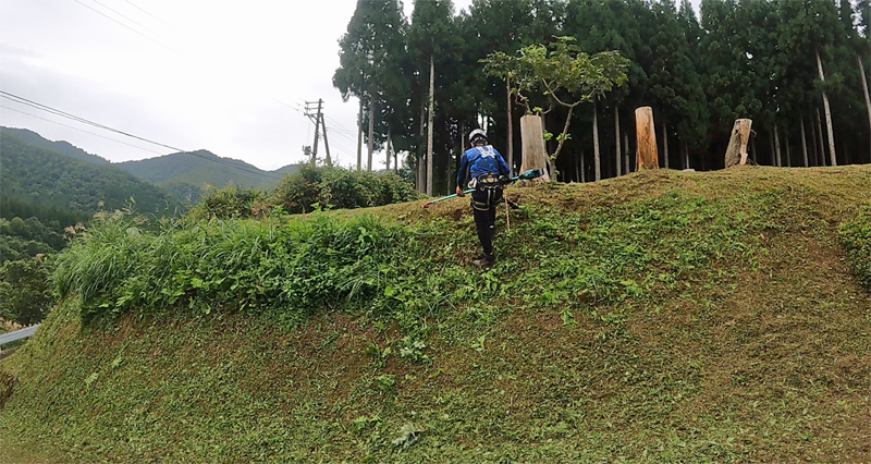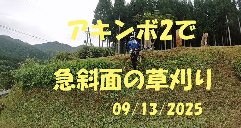 アキンボ2で急斜面の草刈り20250914:大源太農園
