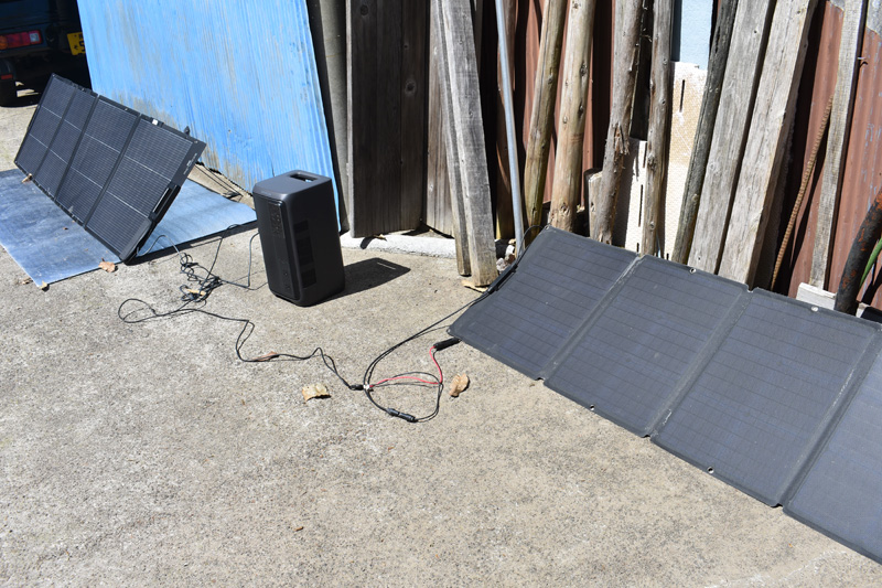 ソーラーパネルも接続して充電をしてみました。
