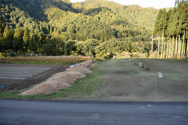 お隣の畑にキノコの会社がオガ屑の廃材を