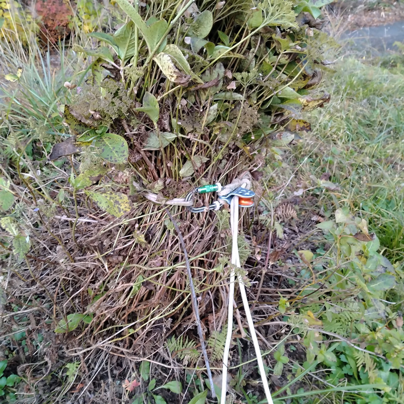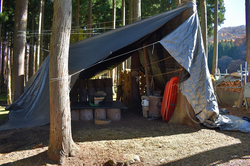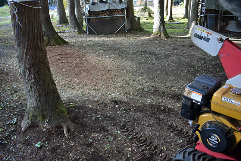 濡れた杉葉を無煙炭化器の周りに置くと比較的