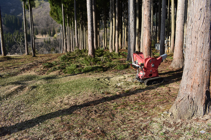 手前方向の杉葉を2本分くらい粉砕する