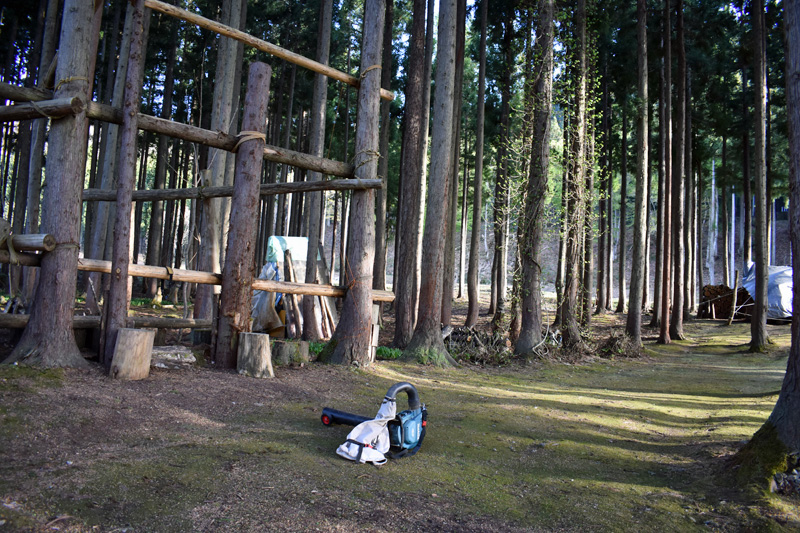 まずは休憩所に落ちた杉の枯れ葉を