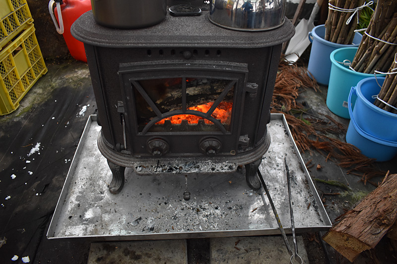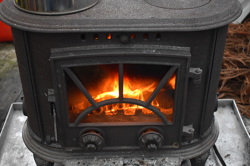 薪ストーブは、夕方には絶好調に燃えてきました。