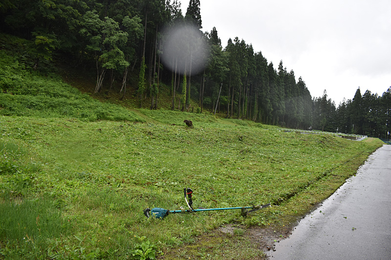 雨が降って来たのですが、荒廃地の手前側の刈り残し