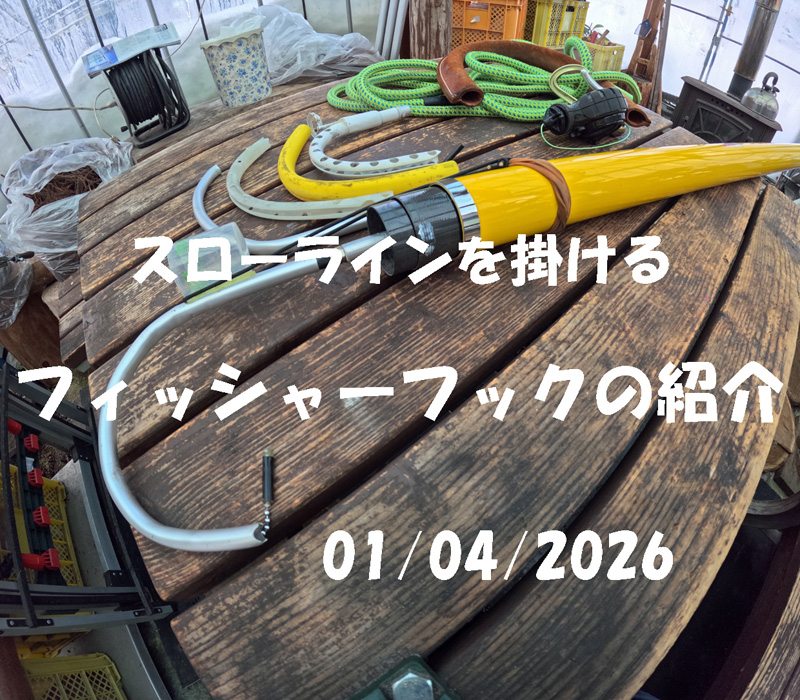 フィッシャーフックで10mの枝にライン掛け:大源太農園20260110