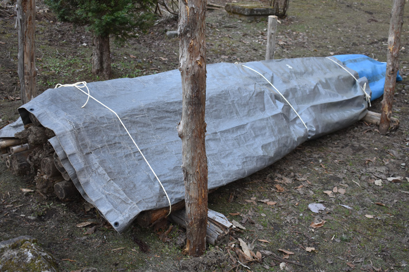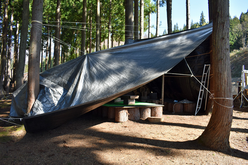 午後から上の杉林の簡易休憩所の屋根シートを