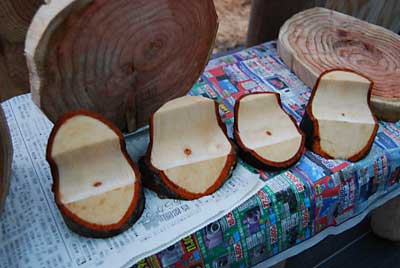 ついでに土台の板のまわりをチェンソーの脇刃で削りました。