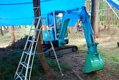 新しい薪棚を作ろうとユンボで移動することにしました。
