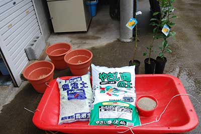 鹿沼土6割、やさい畑の土3割、そして砂1割で混ぜました。