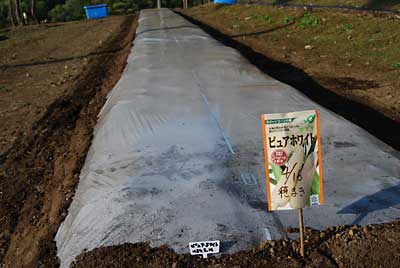 お昼過ぎまでかかってなんとかマルチを張って完成させました。