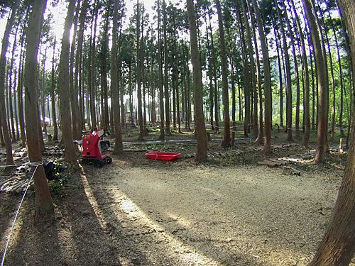 杉林に簡易作業所兼休憩所の設置の準備をしました。