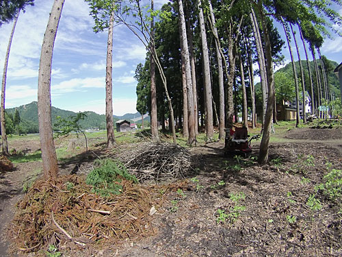 午後から一昨日、杉の葉のチップを敷いた農園の