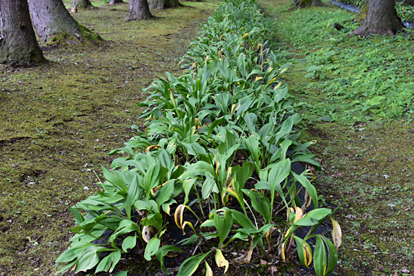 杉林の行者ニンニク畑の点検に行くと、5~6本