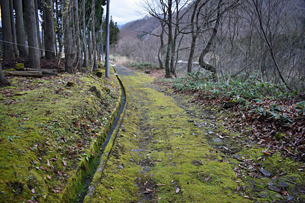 昨日、農園のスギが雪で折れて水路の分水桝に倒れて