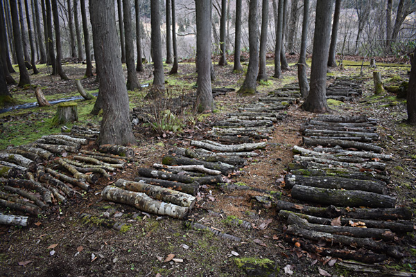 駒を打ったホダ木を農園の杉林の林床に伏せて来ました。