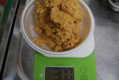 味噌は、きざんだ神楽なんばんと同じ量を使います。