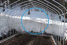 パイプハウスの雪が落ちてもかたづけられるよう