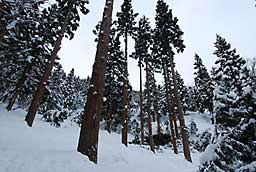 ただ、杉の幹に雪がついている場合、このパイプ付のロープ