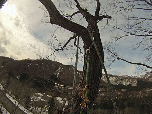 トップアンカーの上にも枯れ枝があったので、更に4m上にサブアンカーを設置しました。