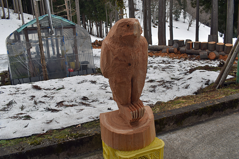 チェンソーカービングでイヌワシ君を