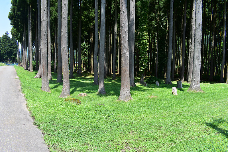 とりあえず、野芝が生えている上の杉林の上側の通路と
