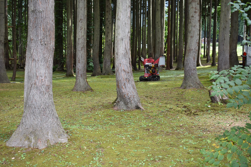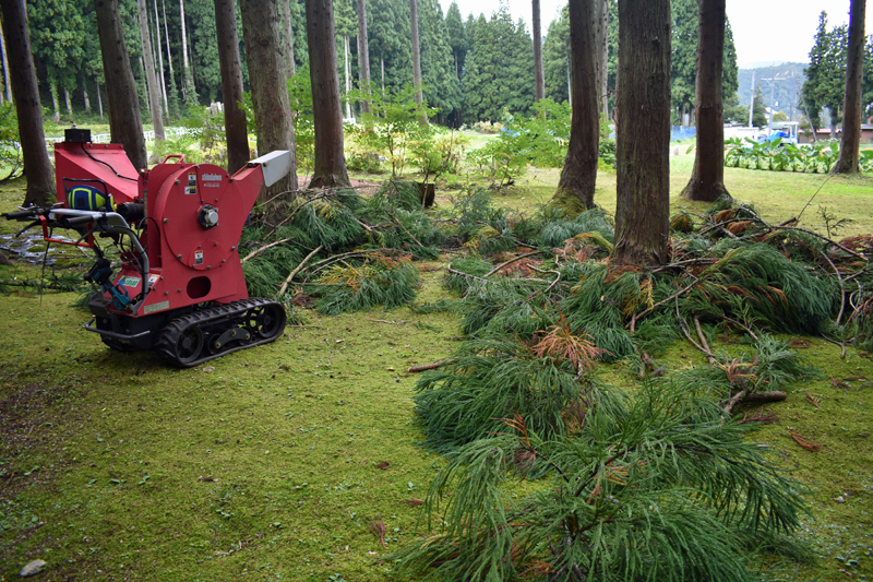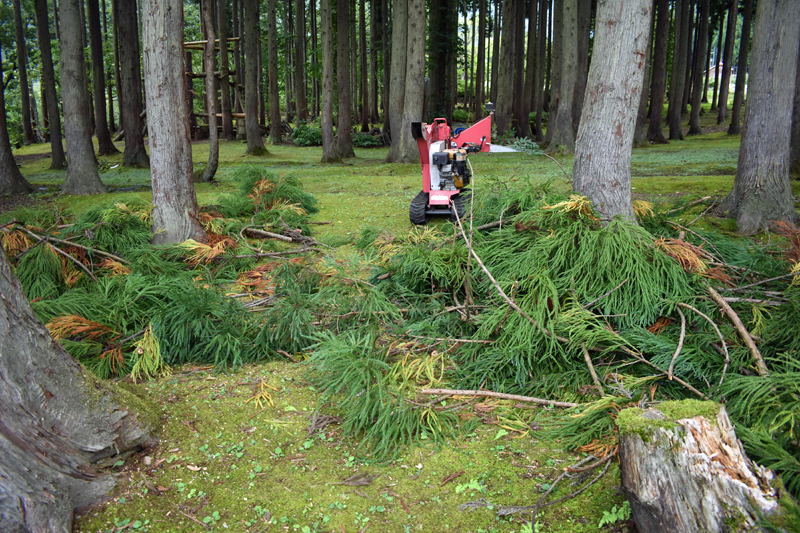 杉の枝をチッパー君に片付けて