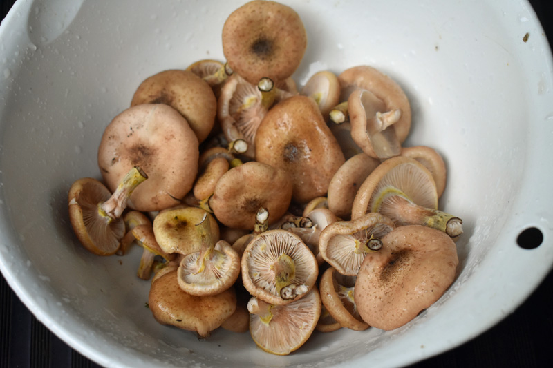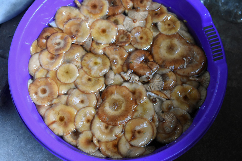 一昨日収穫したナラタケを塩水に漬けて