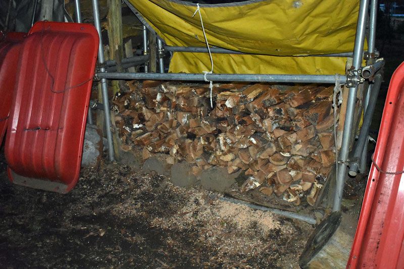 夕方まで、頑張りましたが薪棚の半分