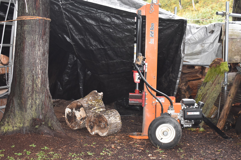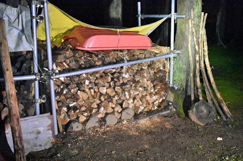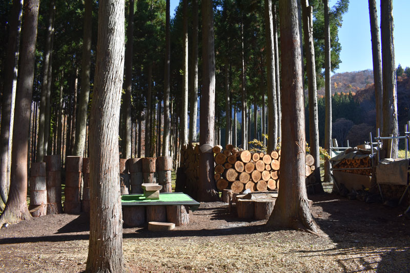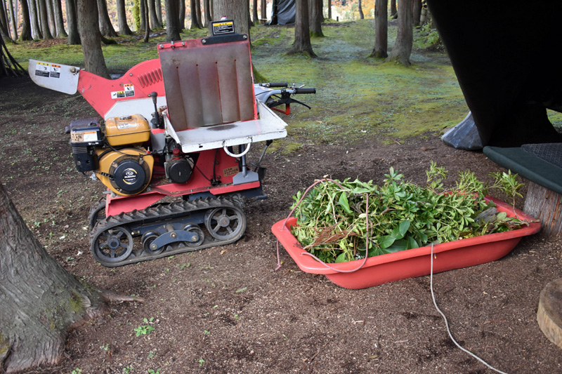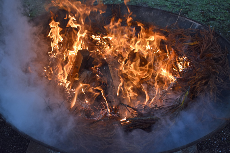 濡れた杉葉を無煙炭化器の周りに置くと比較的