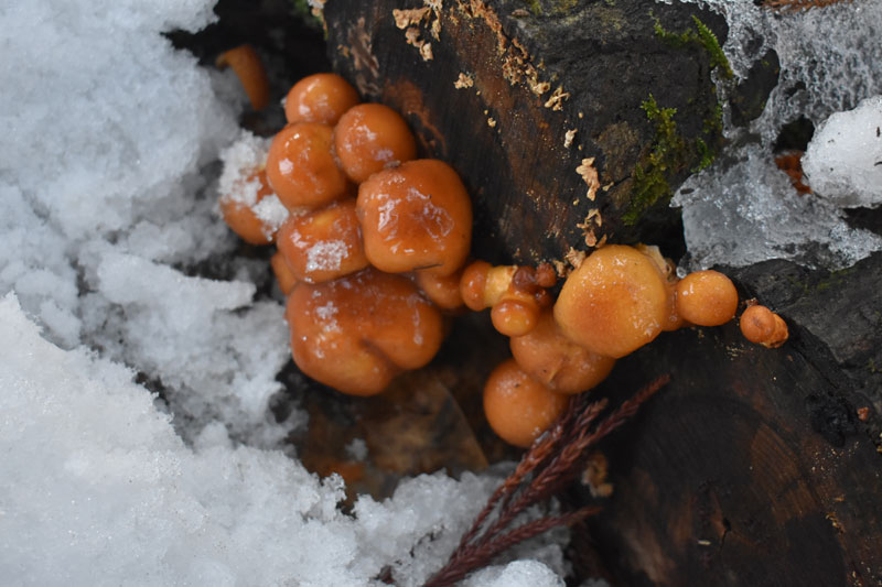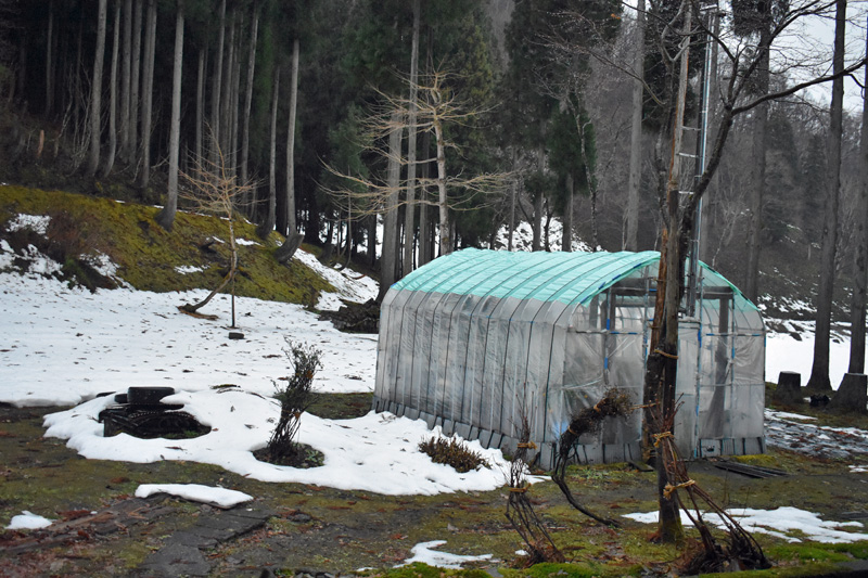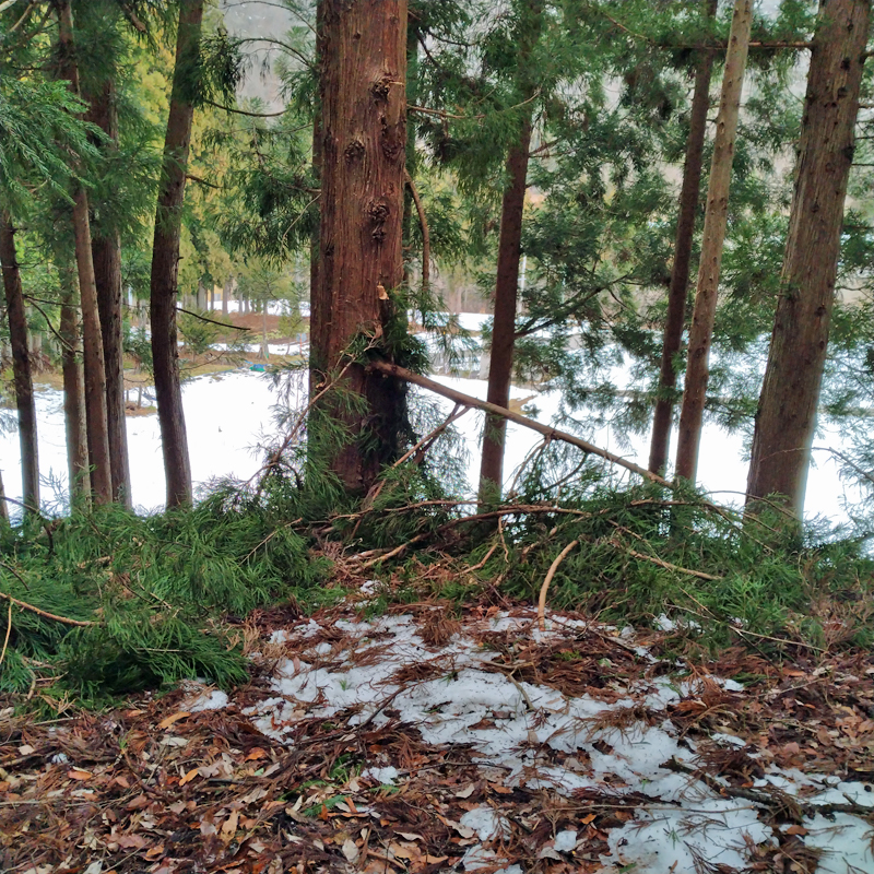 先日の雪で埋まった原木ナメコですが、雪が消えて