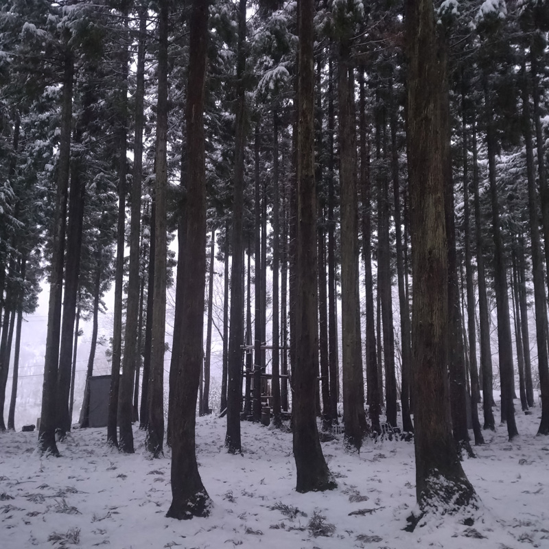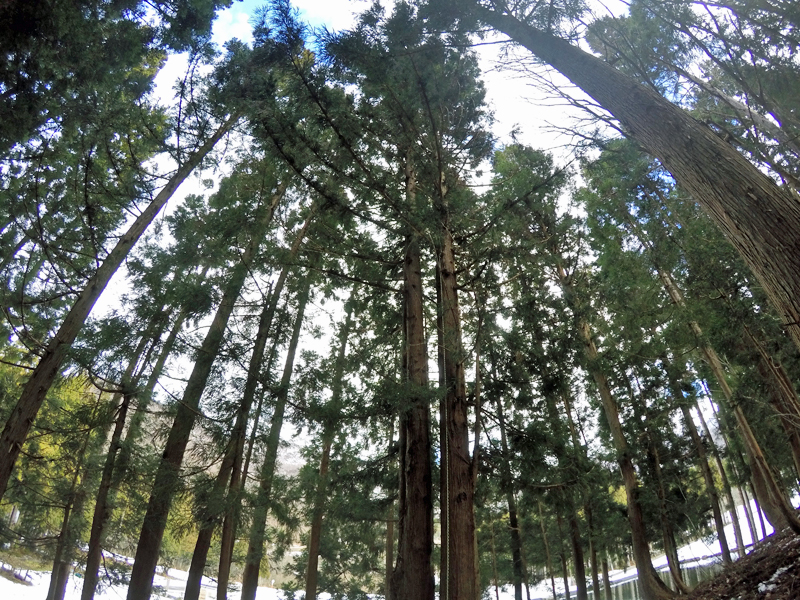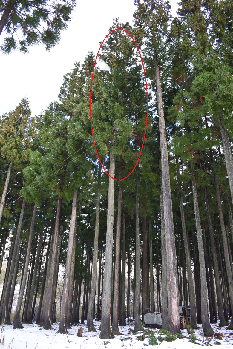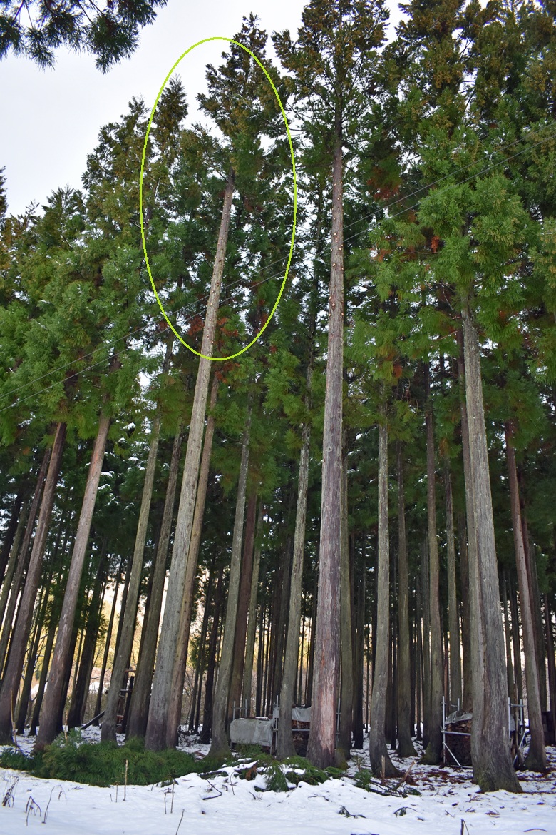 やっぱり太い幹の杉では、安定の木登り器でした。