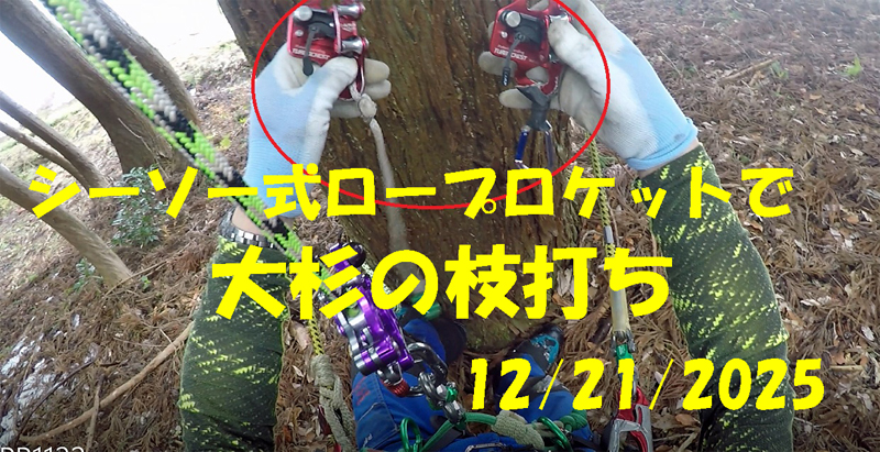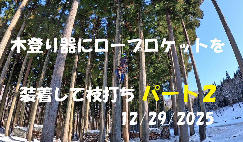木登り器にロープロケットを装着して枝打ちパートⅡ:大源太農園20251229