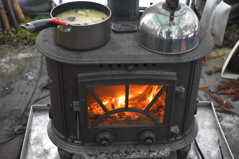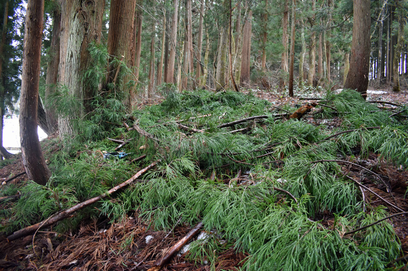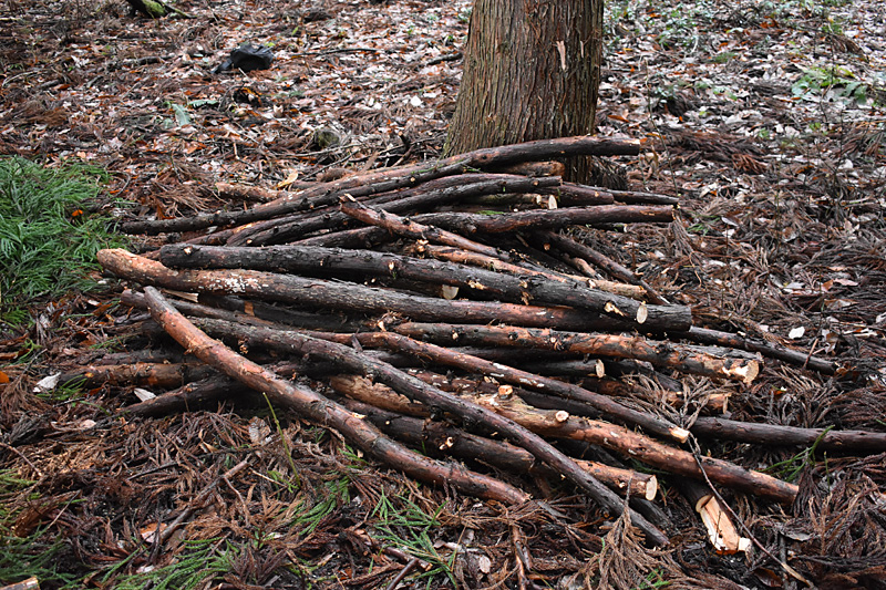 杉葉を外した枝は、来春の杉葉の焼却に使い