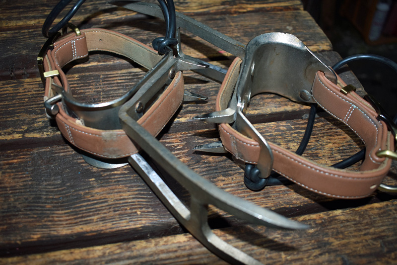 爪の根元を削って皮バンド(大型犬用の首輪)