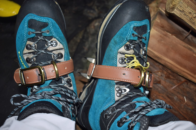 木登り器の皮バンドの取り付けを