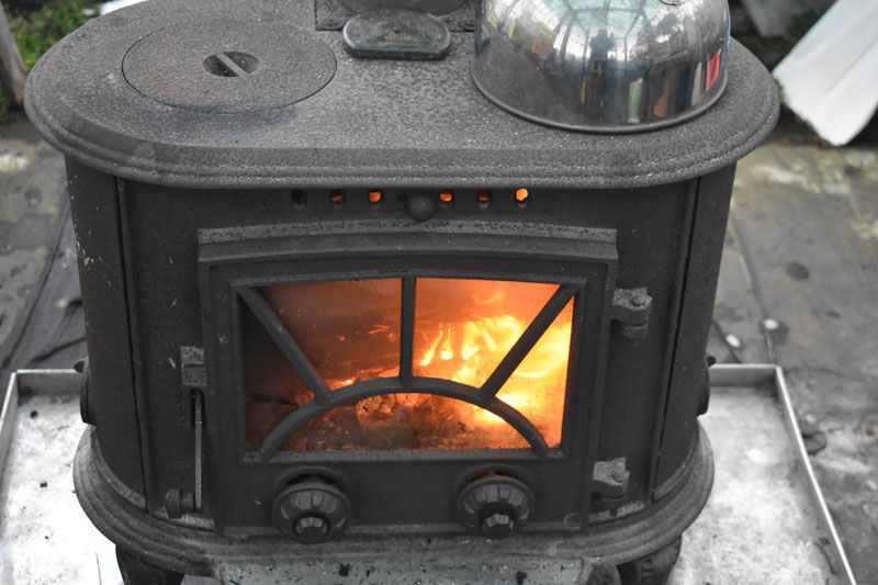 久しぶりにハウスの薪ストーブに火を