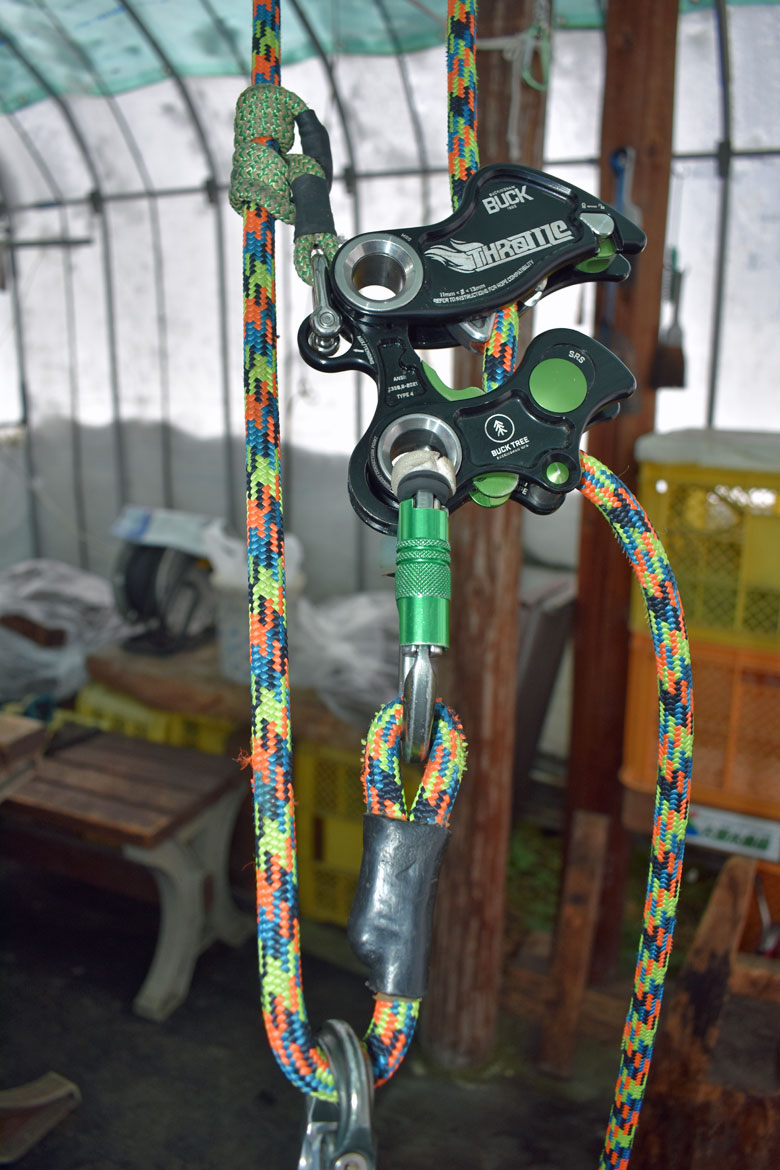 登降器のスロットルを上の方に設置して、ロープを