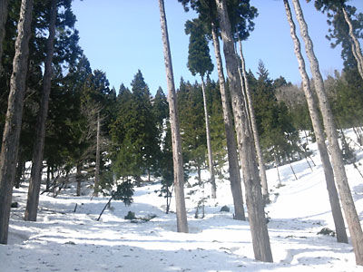 まわりの山々が新緑になる頃まで雪の下になるようコシアブラは低木仕上げに