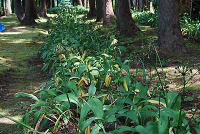 残っていた行者ニンニクの種を林床に播くことにしました。