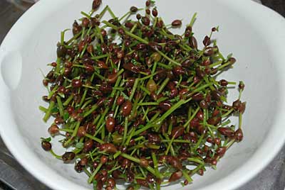 熱湯で1分茹でると、緑色に茹で上がります。