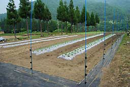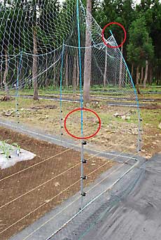 ダンポールを支柱に挿しますが、支柱の切り口で